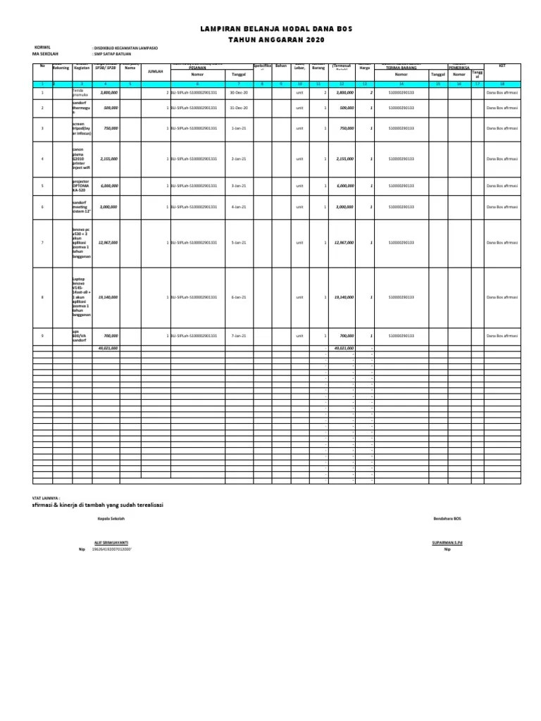 dana bos 2020 boleh digunakan untuk: Kolom 2, diisi kode rekening 3. Kolom 3, diisi jenis/nama barang/jasa. (peraturan menteri pendidikan dan kebudayaan nomor 1 tahun 2018, pasal 1 angka 3) Adapun komponen yang mengalami perubahan dalam aplikasi alpeka bos 2020 yang sesuai dengan juknis bos 2020 dalam peraturan menteri pendidikan dan kebuadayaan nomor 8 tahun 2020 yakni komponen penggunaan dana bos untuk sd, sdlb, smp smplb dan smk tahun 2020 terdiri dari : 220 rekap dana bos dinas pendidikan dan kebuday tahun anggaran 2016 jumlah pendapatan triwulan ii triwulan iii triwulan iv. Pembayaranguru honor dan tenaga kependidikan pada sekolah negeri dan guru pada sekolah yayasan maksimal 50%. Surat keputusan kepala sekolah berisi tentang keputusan atau kebijakan tertulis dari seorang pimpinan organisasi atau lembaga pendidikan sebagai dasar untuk melaksanakan tugas dalam organisasi sekolah. Monev dana bos reguler tahun 2020. Penyelenggaraan bursa kerja khusus (bkk), praktik kerja industri (prakerin) atau praktik kerja lapangan (pkl) di dalam negeri, pemantauan kebekerjaan, pemagangan guru, dan lembaga sertifikasi profesi p1. Pengembangan profesi guru dan tenaga kependidikan. Rkas 2021, cara menyusun rkas bos 2021, format rkas bos 2021, aplikasi rkas 2021, alpena bos 2021, rkas 2021, rkas bos 2021, tutorial penyusunan rkas bos 2021, tutorial membuat rkas bos 2021, aplikasi sip rkas bos 2021, cara input arkas terbaru 2021 aplikasi laporan dana bos excel 2020 (gratis) Rencana kegiatan dan anggaran sekolah (rkas) tahun 2020 no kode rekening uraian.