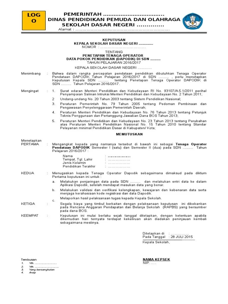 Contoh Sk Operator Dapodik 2021 Diknas Sumut / Contoh Surat Sk Operator Dapodik Contoh Surat - Aplikasi takola dengan menggunakan akun operator dapodik, sedangkan untuk dinas pendidikan provinsi, cabang dinas, .