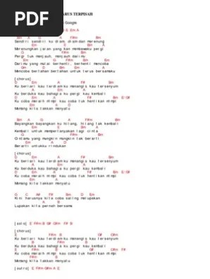 Bertahan untuk terus bersamaku ku berlari kau terdiam. Untuk terus bersamaku chorus d em a f# bm ku berlari kau terdiam ku menangis kau tersenyum a em a ku berduka kau bahagia ku pergi kau kembali . Ku berlari, kau terdiam, ku menangis, kau tersenyum Kuberlari kau terdiam 'ku menangis kau tersenyum. Sendiri, sendiri ku diam, diam dan merenung.